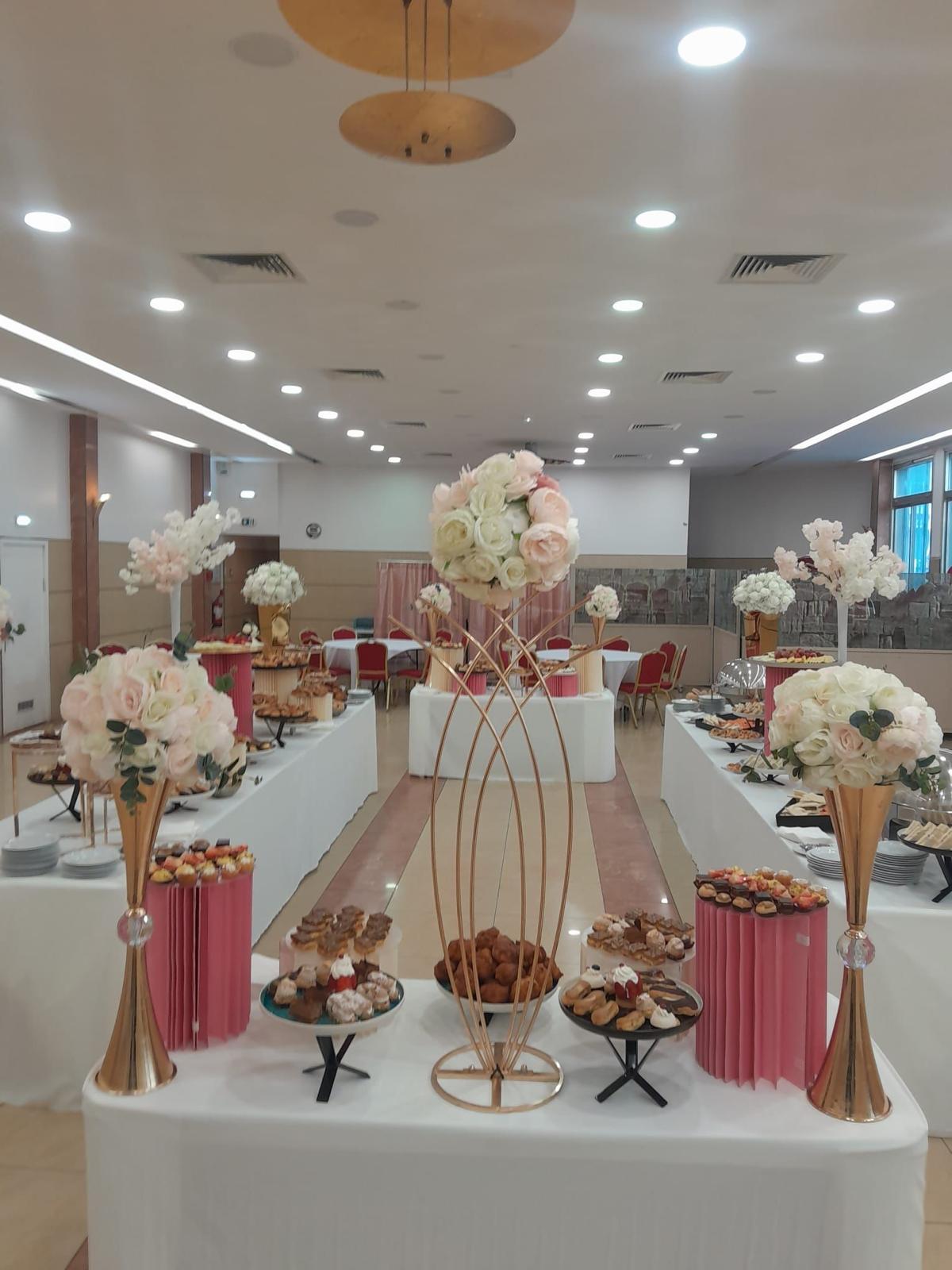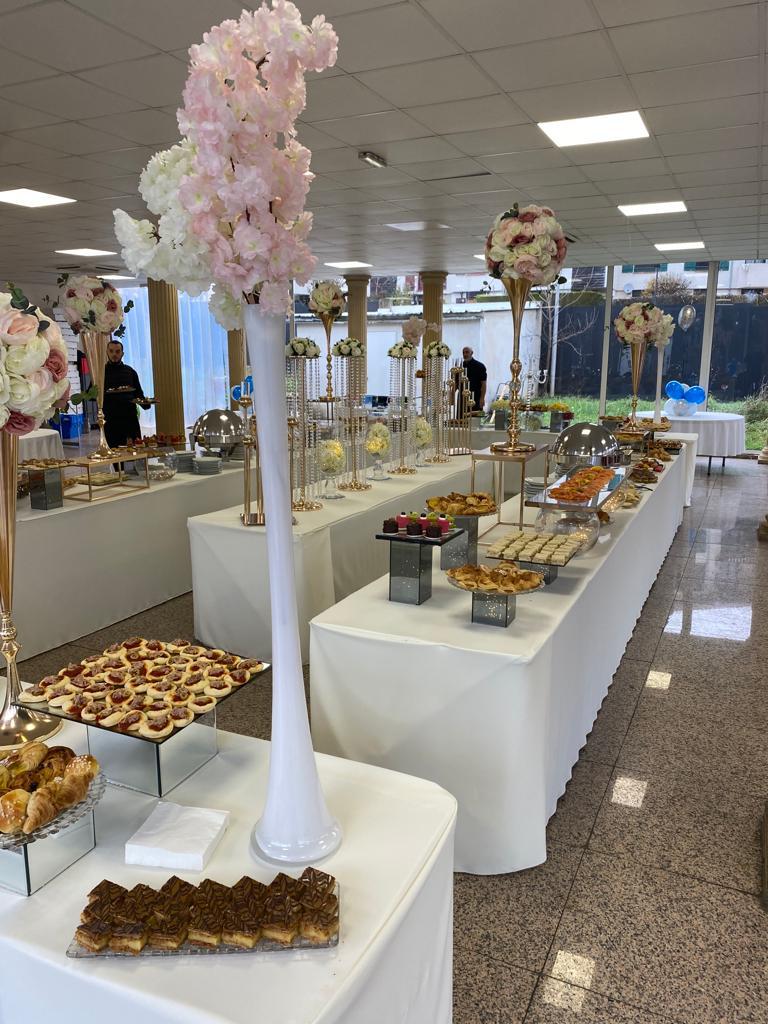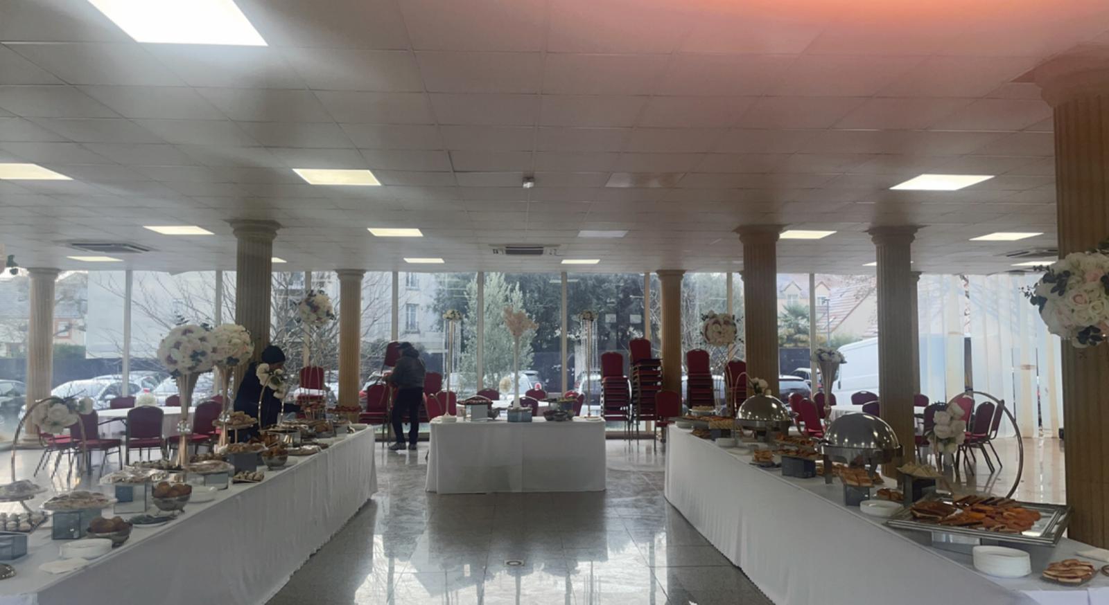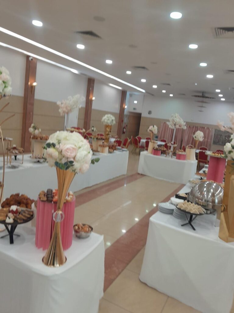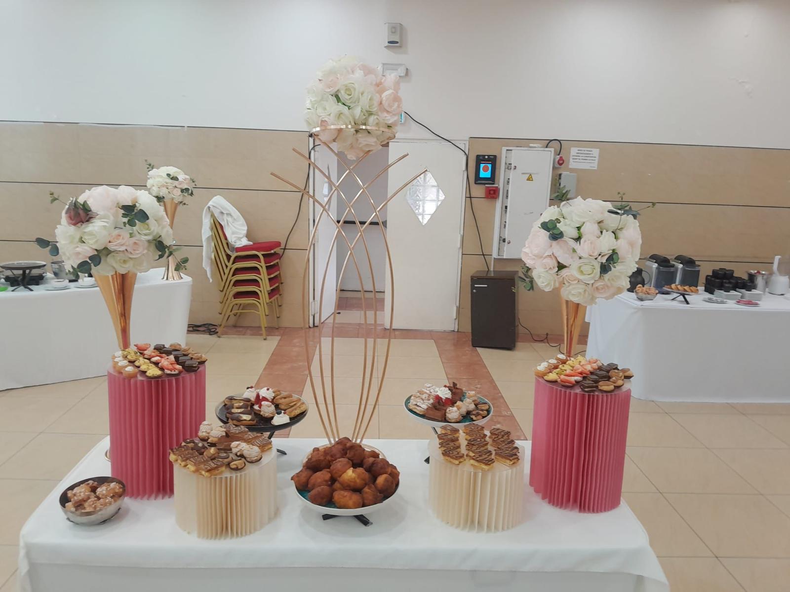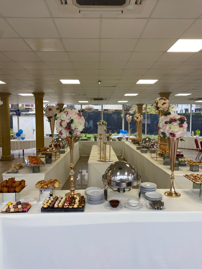 | Boissons & Service | Café expresso, Coca-Cola, Coca Light, Vittel, jus d’orange, citronnade + nappages, juponnages, verreries |
