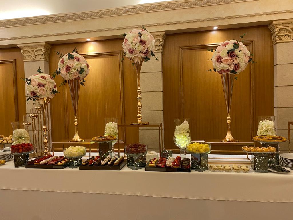 | Petits Fours Frais | Mini éclairs (café, chocolat), tartes aux fraises, macarons ganaches, moelleux amandes, mini opéras, mini Longchamp, mini tartes citron, dôme chocolat, mini baba au rhum |