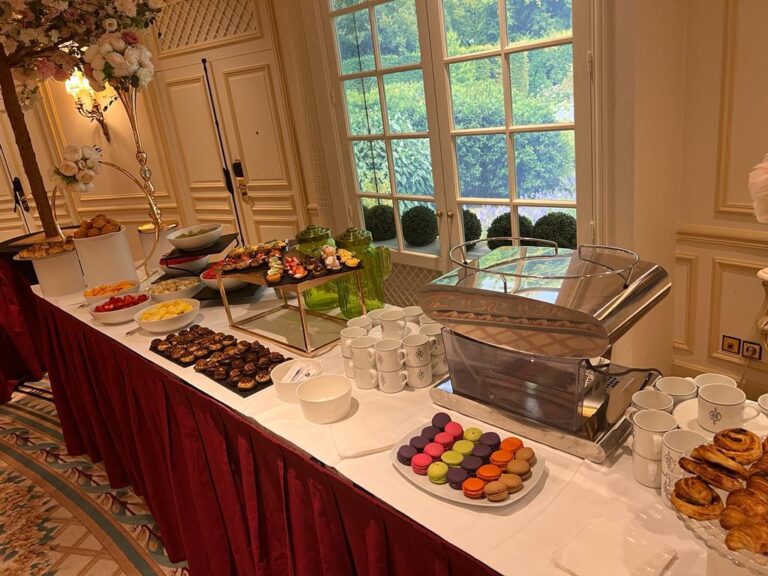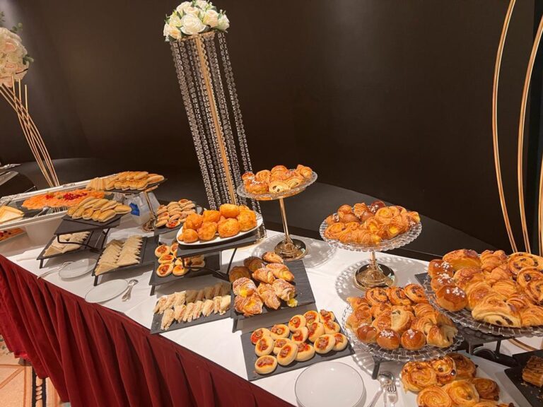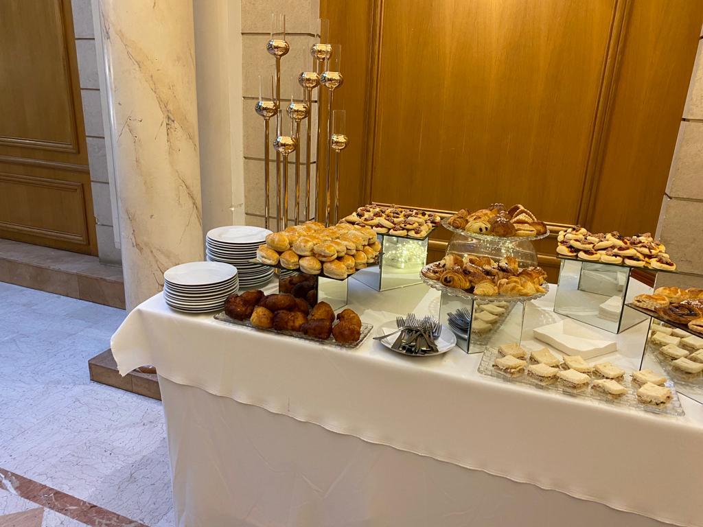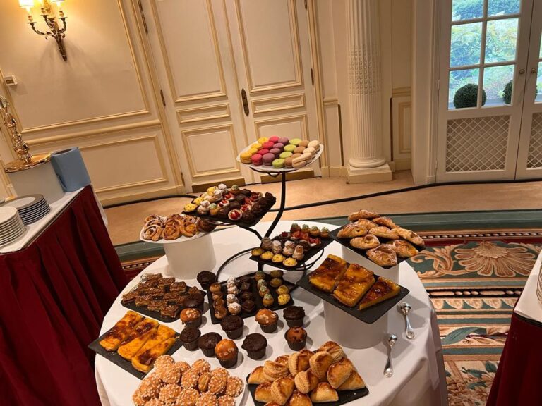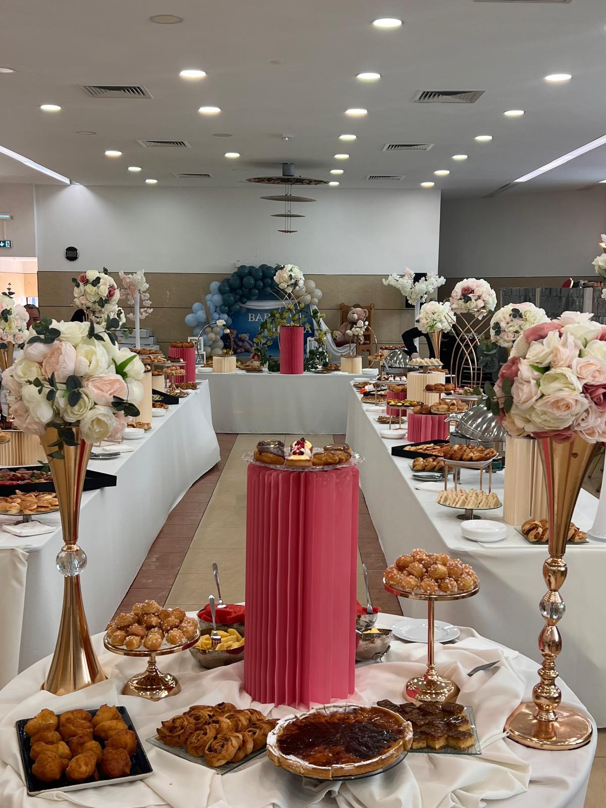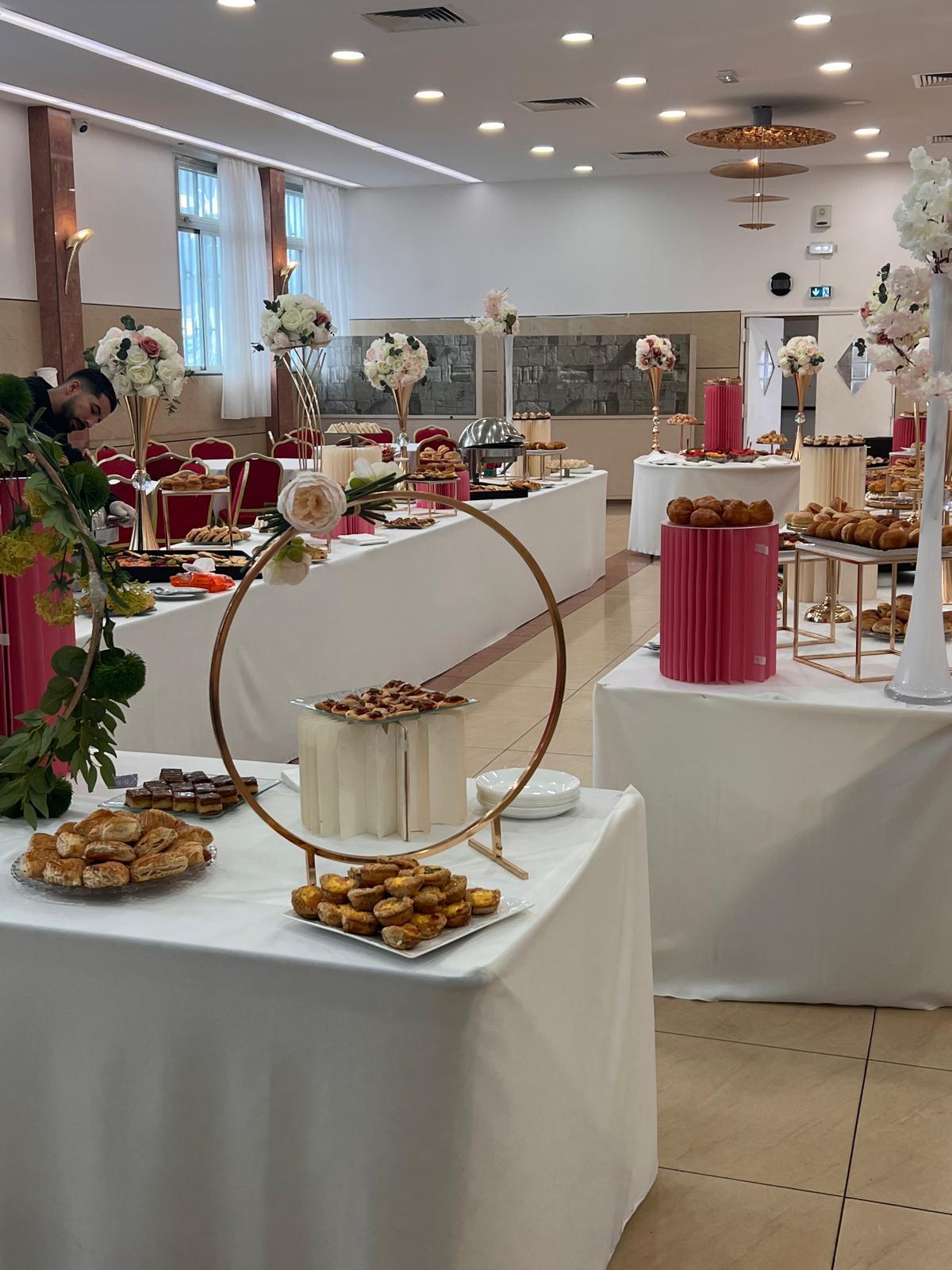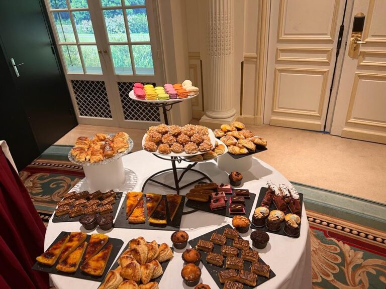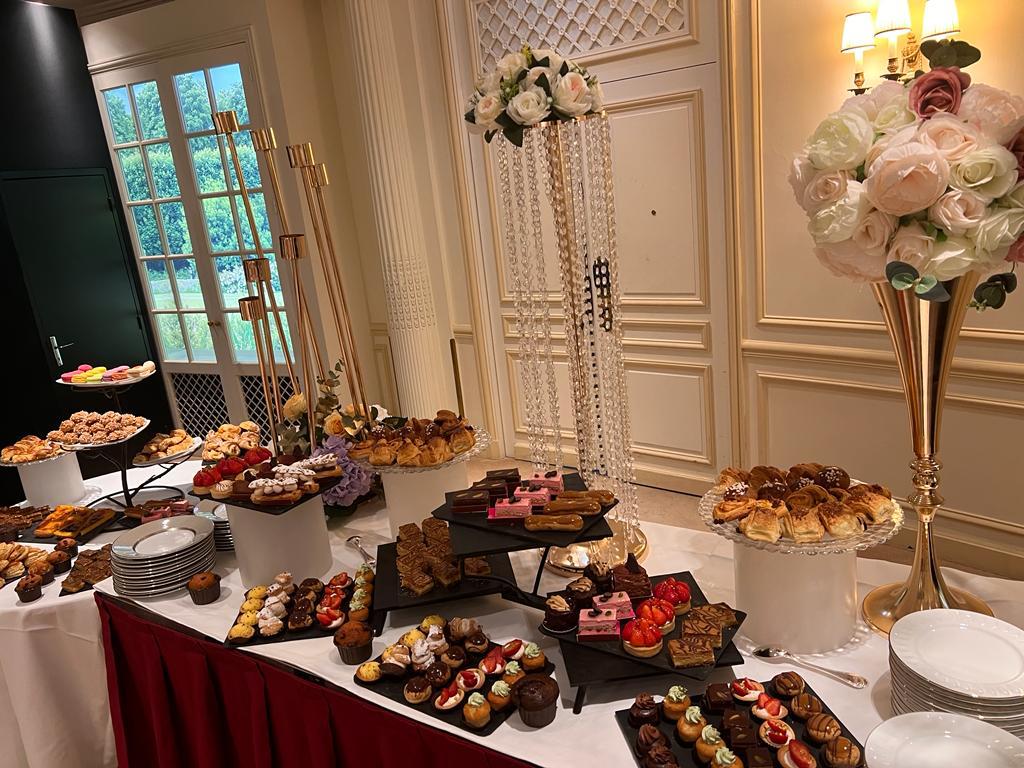 | Viennoiseries & Pâtisseries | Mini croissants, pains chocolat, brioches, boules miel, chaussons pommes, pains aux raisins, chinois, pithiviers |