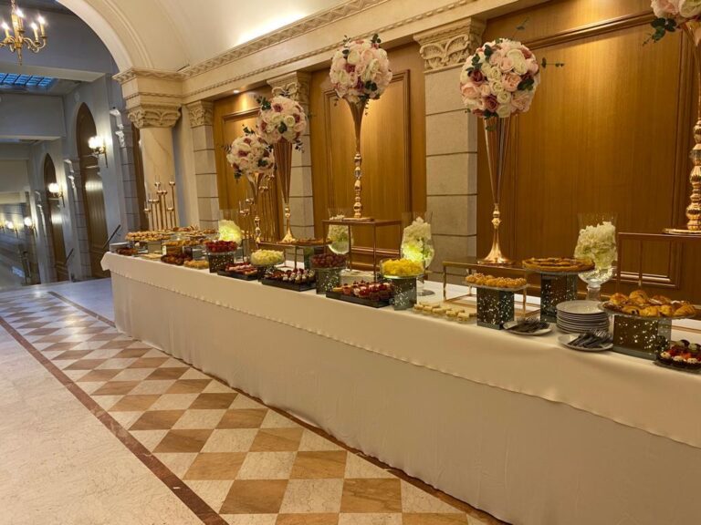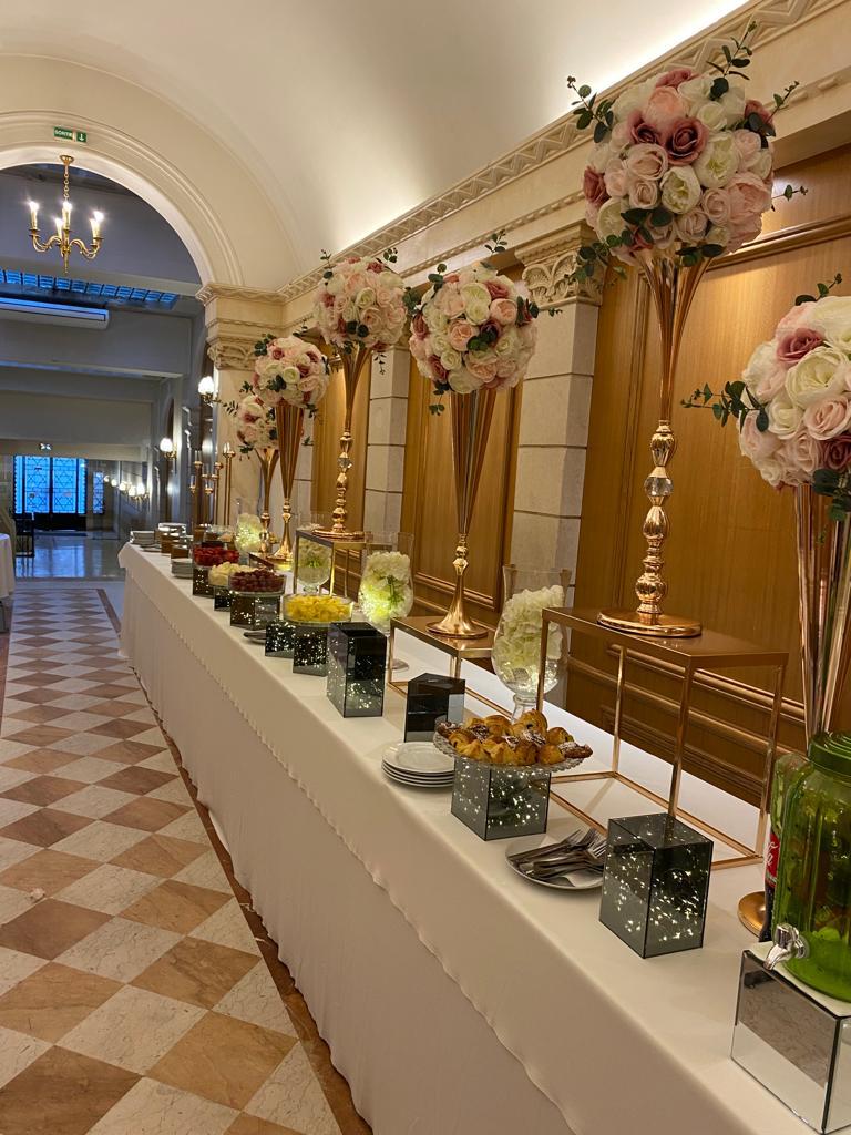 | Boissons & Service | Café expresso, Coca-Cola, Coca Light, Vittel, jus d’orange + nappages, juponnages, verrerie |