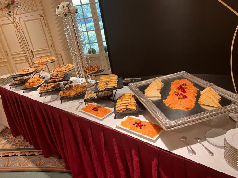 | Présentations Gourmandes | Macarons foie gras, plateau de charcuteries, saumon fumé en présentation raffinée, carpaccio de saumon |
