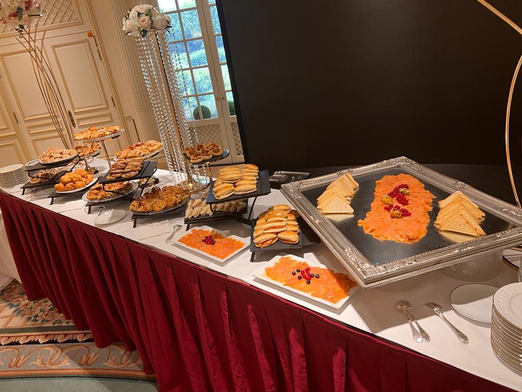 | Dégustations Salées | Mini pizzas, petits fricassés, navettes garnies (saumon, assortis), miroir de saumon fumé, sushis |