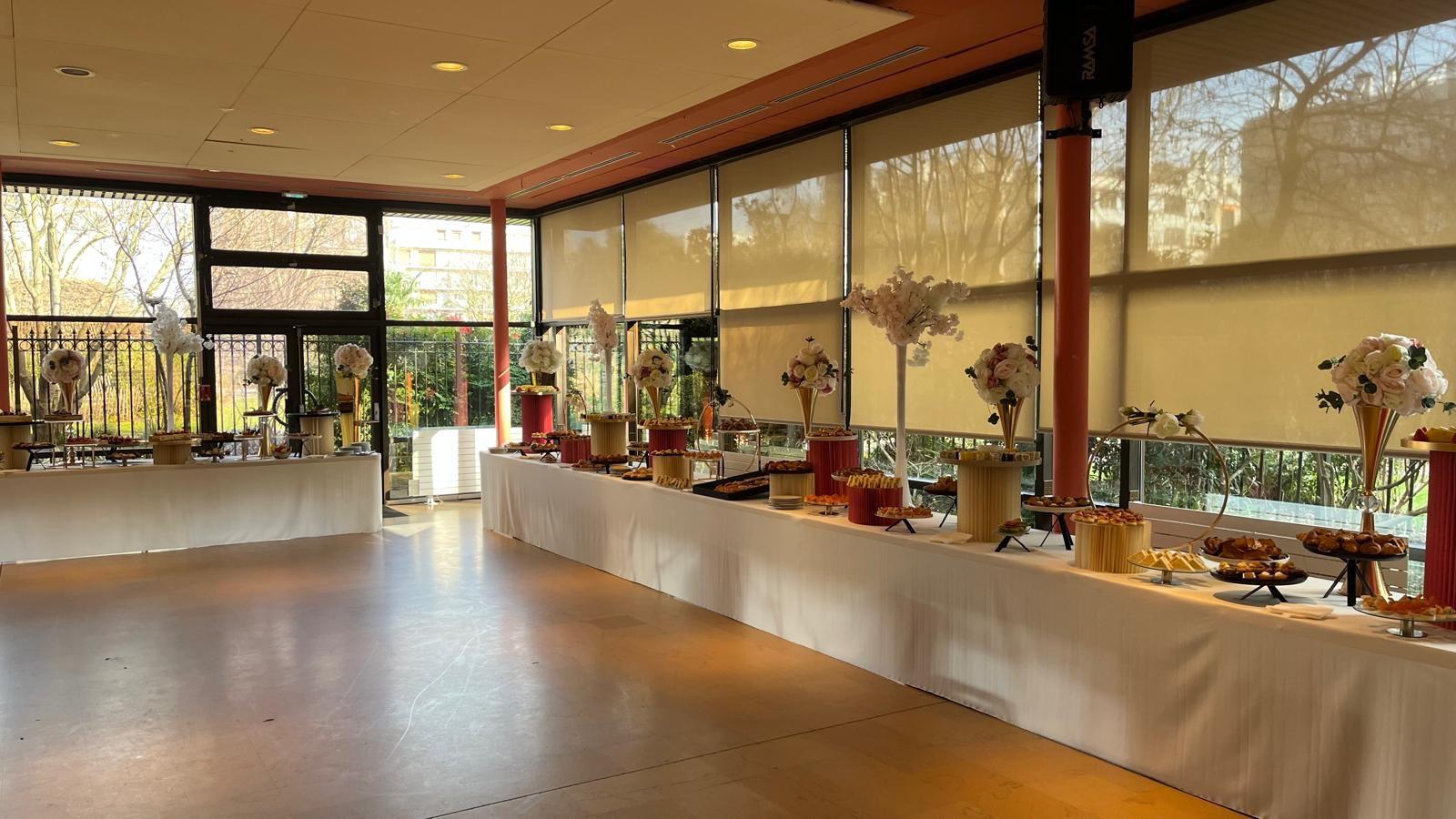 | Boissons & Service | Café expresso, Coca-Cola, Coca Light, Vittel, jus d’orange, citronnade + Nappages, juponnages, verreries |