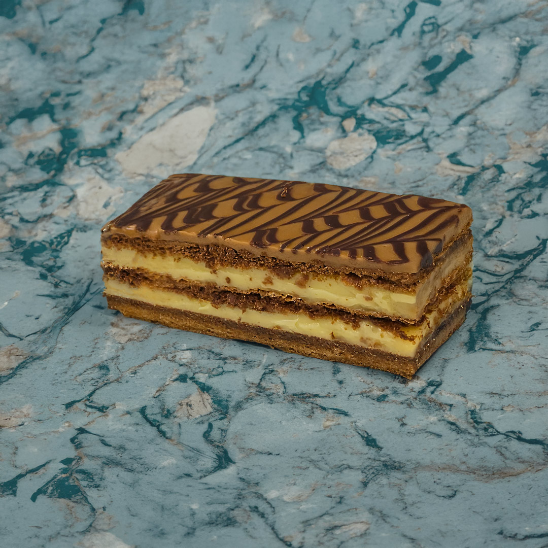 Feuilles de pâte feuilletée croustillante alternées avec une crème pâtissière vanille